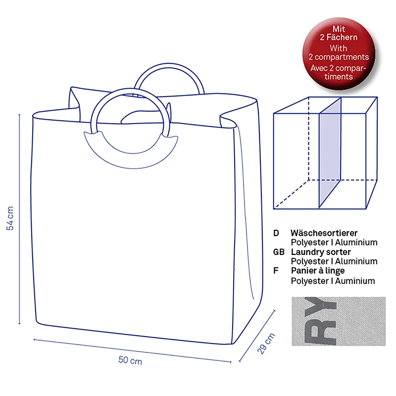 PALMA Korpa za ves poliester siva - 50x29cm, H54 cm